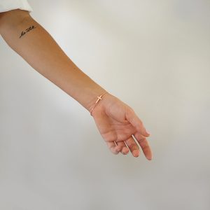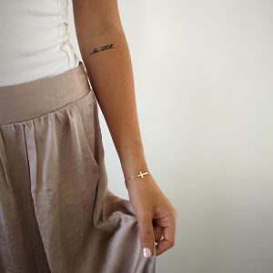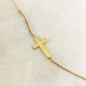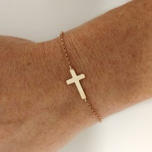 A lovely delicate cross bracelet that looks great on its own or stacked with other bracelets.