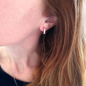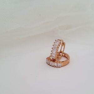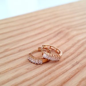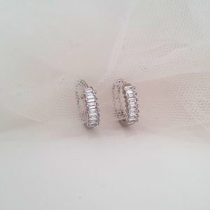 Cute eye-catching huggies set with baguette shaped cubic zirconias