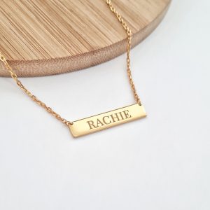 A flat bar plate linked to a dainty but strong chain that looks beautiful plain or personalised.