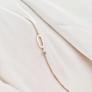 The design & name of this bracelet is inspired by new beginnings. A refreshed bright soul (represented by the stone) stepping outside of its comfort zone (represented by the large link)…fragile & vulnerable, maybe…brave and brilliant, yes! Stepping out into newness x