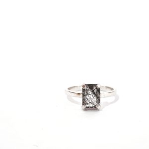 A simple, yet striking ring that shows off the natural wonders of tourmalated quartz with the stone low-set in a 4-claw setting