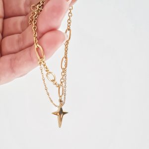 A dual chain bracelet with a wishing star charm. Adjustable size